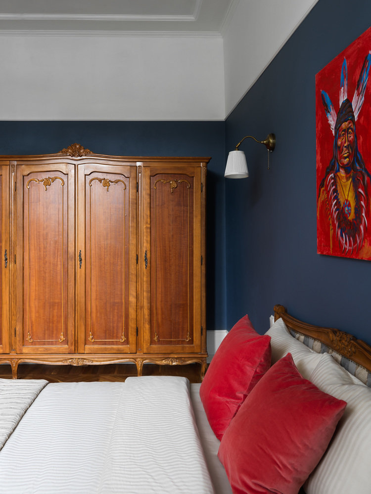 В синей спальне сохранили хозяйский платяной шкаф румынского производства.