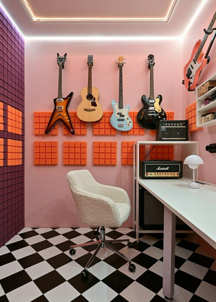 Граффити, яркие картины, RGB-подсветка в двушке 40 м²Дизайн