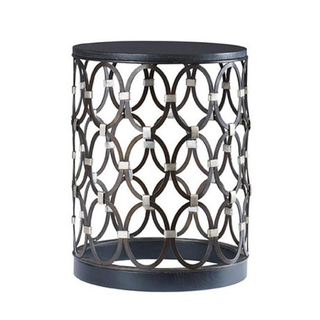 Очарование приставного стола от Candice Olson в его металлической конструкции с переплетением овальных форм и круглой столешнице из натурального камня.
