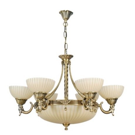 Алюминиевое основание цвета античной бронзы, стеклянные плафоны цвета ванили.