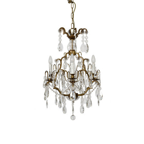 Люстра на 6 лампочек из фабричного хрусталя и латуни.