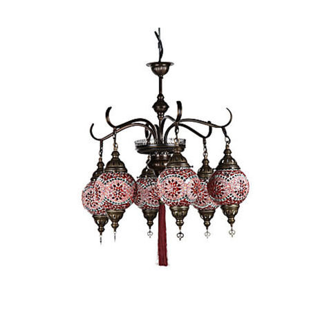 Люстра ручной работы в ярком восточном стиле - мозаика из разноцветного стекла, 6 плафонов характерной для восточного стиля формы, латунные детали, - дополнит современный интерьер ярким акцентом.