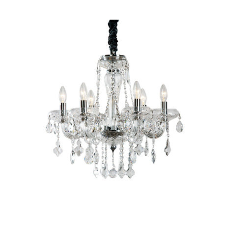Восьми-рожковая люстра в классическом стиле. Подвесы разнообразной огранки - в виде миндаля, дубовых листочков или листка клевера. Основания ламп установлены в изящных розетках. Светильник рассчитан на лампы с цоколем Е14.
