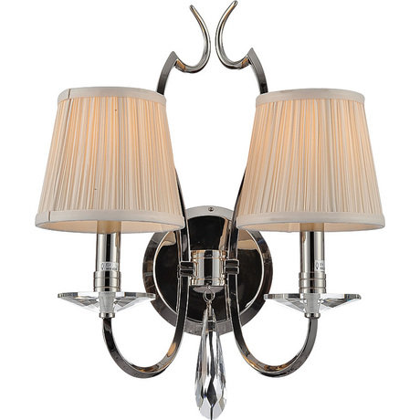 Настенный светильник от Garda Decor с основанием из стали декорирован длинной подвеской и двумя плафонами из плиссированной ткани нежного кремово-бежевого цвета.