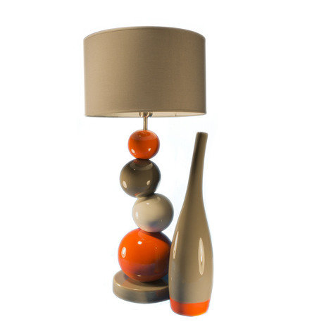 Абажур этой лампы будто балансирует на вершине пирамидки из керамических шариков. Такая иллюзорная неустойчивость вносит динамику в интерьер в купе с сочным сочетанием теплых цветов, которыми раскрашены шары.