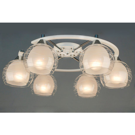Люстра «Буги» - это идеальное сочетание стиля, дизайнерского оформления и качества материалов. Она станет превосходным украшением интерьера любого помещения. Изделие рассчитано на площадь комнаты 24 кв. м. В дизайне плафонов использована два вида стекла – прозрачный с нанесением рисунка и белый, дающие ощущение лёгкости и невесомости. Выполненная в современном, оригинальном стиле, люстра Буги превосходно впишется в интерьер, как кухни, спальни так и детской комнаты. Вы можете подобрать подходящий вам тип светильника из коллекции «Буги»: потолочный или настенный бра. В светильники коллекции устанавливаются 6, 4, или 1 лампы мощностью 75W типа Е27.