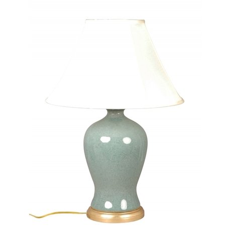 Очередная работа Ральфа Лорана в стиле арт-деко. Драгоценный нефритовый оттенок, отделка золотым цветом и белый абажур. Для кабинета, спальни, гостиной. Прекрасно смотрится со светлым и темным деревом.