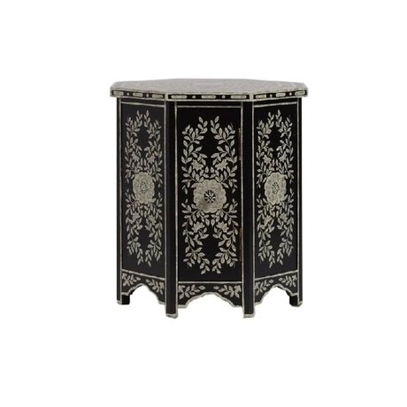 Очаровательный восьмигранный столик, вручную расписанный очаровательными цветами. Одна из граней, на самом деле, является дверцей за которой скрывается вместительное пространство, разделенное полкой.