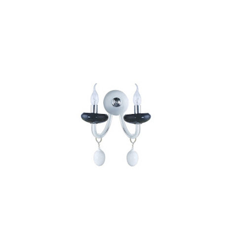 Настенное бра от итальянских дизайнеров из металла и стекла с двумя черными подсвечниками и белоснежными подвесками. Светильник впишется в современный интерьер, оформленный в светлых тонах.