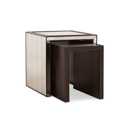 Набор из двух приставных столиков. Верхний столик отделан античным зеркалом, нижний столик выполнен в отделке Fumee Noire. Данная позиция возможна только под заказ.