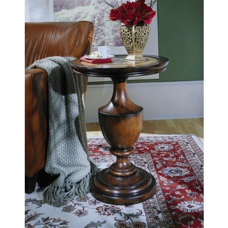 Элегантный приставной столик, восхищающий качеством отделки, от американской компании «Hooker». Точёная ножка «а-ля ваза» опирается на резное круглое основание, которое повторяет форму удивительной красоты столешницы: её обрамление выполнено из тёмного дерева, а топ –из более светлого. Такой столик идеально впишется в современный классический интерьер, добавив ему изящества и шарма.