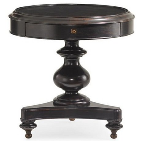 Изящный приставной круглый столик American Kaleidoscope на одной резной ножке, с одним выдвижным ящиком, в отделке Black.