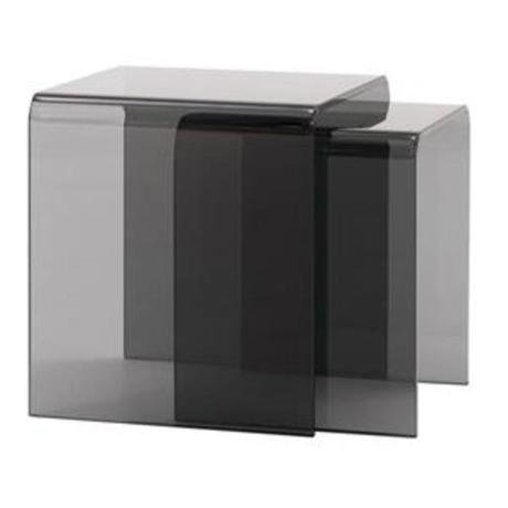 Приставные столики из тонированного стекла в стиле лофт. Удобная обтекаемая форма легко впишется в интерьер, а разно-уровневая высота позволит освободить пространство, спрятав малый столик.