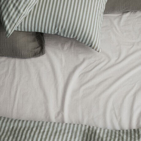 Простыня на резинке из тонкоплетенного хлопкового перкаля. Количество нитей 300. Для матрасов высотой до 23 см.