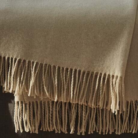 Плед из смесовой шерсти, обеспечивающий тепло и мягкость. Модель имеет однотонный дизайн с бахромой по краям.