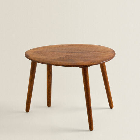 Деревянный приставной столик со скошенной кромкой. Ножки отсоединяются. Они легко крепятся без использования инструментов.