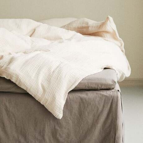 Трехстороннее покрывало из стираной смеси льна и хлопка с красивой драпировкой. Верх выполнен из хлопка.