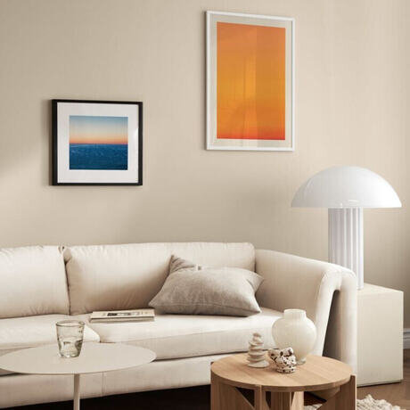 Красивая фотография, на которой запечатлен спокойный весенний закат с небом, окрашенным в мягкие пастельные розовые цвета, с оранжевыми, желтыми и фиолетовыми облаками. Это произведение искусства, снятое в Таиланде в 2021 году Чичартом Дуангдо, привносит нотку спокойствия в любую комнату. Мотив имеет встроенную бежевую окантовку.