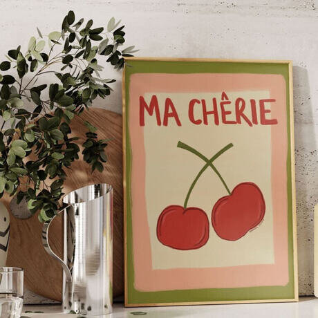 Украсьте свое пространство нашим постером «Ма Шери» от Engberg Stduio. Яркие зеленые, розовые и красные цвета, а также очаровательная вишневая иллюстрация добавят игривой элегантности вашему пространству. Этот постер идеально подходит для любой комнаты, добавляя ярких красок и причудливости и напоминая вам, что нужно ценить сладкие моменты жизни.