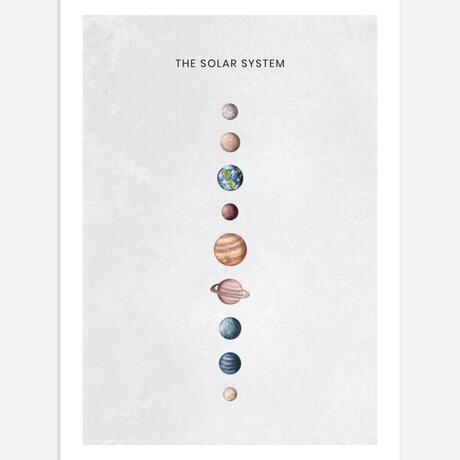 Плакат «Солнечная система» идеально подходит для детских комнат, он стильный и познавательный. Знаете ли вы названия всех планет нашей солнечной системы? Белое интегрированное паспарту элегантно завершает мотив.