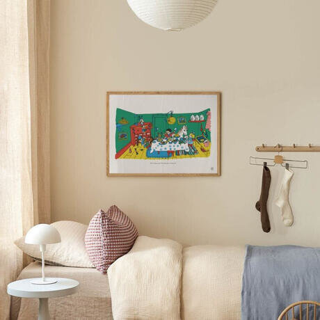 Пеппи Длинныйчулок — вечный персонаж, созданный шведской писательницей Астрид Линдгрен. Обладая добротой, оранжевыми косами, веснушчатым лицом и недюжинной силой, Пеппи ведет полную приключений жизнь на вилле Кунтербунт в сопровождении своего коня Маленького дяди и обезьяны мистера Нильссона. С 1945 года Пеппи покорила сердца читателей всего мира и стала любимым символом свободы и силы. Фотографии Ингрид Ванг Найман. Иллюстрация обеденной зоны Пеппи Длинныйчулок, где Пеппи, ее друзья Томми и Анника, а также их животные Маленький дядя и мистер Нильссон устраивают пир. Под картинкой на английском языке написана цитата Пеппи. Мотив расположен на бежевом фоне.