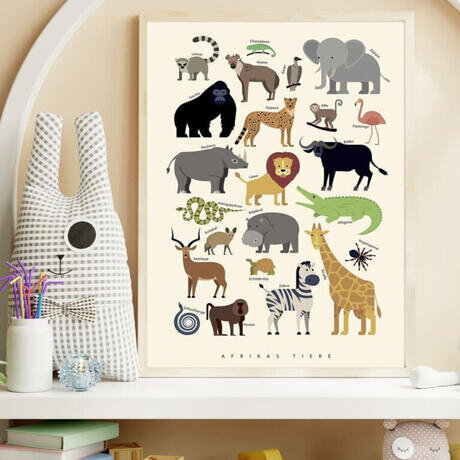 Отправьтесь на сафари в Африке с этим красочным плакатом об удивительной дикой природе континента! От величественного слона до стремительного гепарда — плакат полон прекрасных иллюстраций самых знаковых животных Африки. Идеально подходит для детей, которые мечтают о приключениях и хотят узнать больше о фантастических животных Африки.