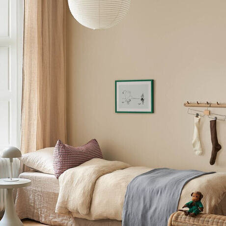 Иллюстрация Муми-тролля и Малышки Мю. Мотив изображен черным цветом на светло-сером фоне и обрамлен встроенным белым креплением.