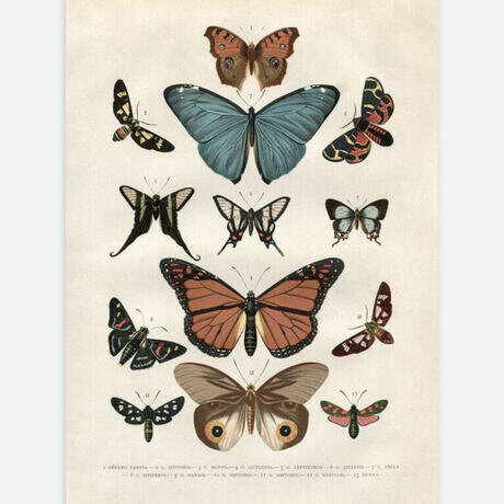 Откройте для себя этот образец винтажного плаката! Если не считать шуток, эти красивые бабочки впервые были проиллюстрированы еще в 1881 году. Теперь они служат прекрасным мотивом для вашей стены! Удачно объедините их с винтажными насекомыми.
