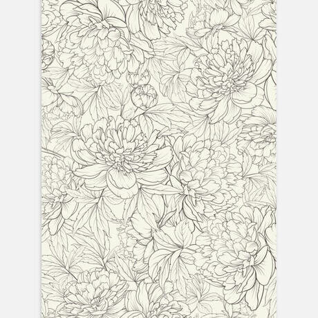 Графический мотив, изображающий нарисованные от руки пионы на бежевом фоне.