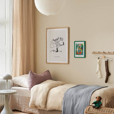 Пеппи Длинныйчулок — вечный персонаж, созданный шведской писательницей Астрид Линдгрен. Обладая добротой, оранжевыми косами, веснушчатым лицом и недюжинной силой, Пеппи ведет полную приключений жизнь на вилле Кунтербунт в сопровождении своего коня Маленького дяди и обезьяны мистера Нильссона. С 1945 года Пеппи покорила сердца читателей всего мира и стала любимым символом свободы, силы и необычности. Иллюстрация Пеппи Длинныйчулок, танцующей на полу. Под изображением на английском языке написана цитата Пеппи. Мотив выполнен в черном цвете на бежевом прямоугольном фоне и обрамлен интегрированной белой рамкой. Иллюстрировано Ингрид Ванг Найман.