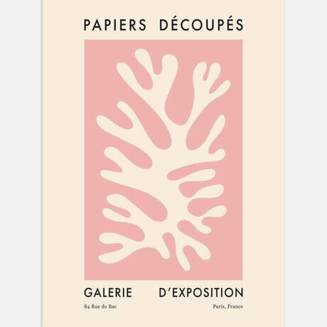 Графическое изображение бежевого выреза на розовом фоне с бежевой каймой. Эти красочные и абстрактные формы вдохновлены авангардным художественным движением фовизма, которое процветало во Франции в начале 20-го века.