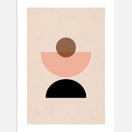 Графический постер с множеством геометрических фигур в естественной цветовой палитре. Встроенный белый коврик элегантно обрамляет принт и выделяет его.