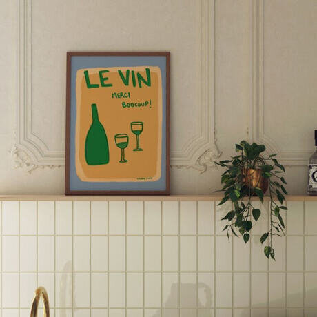 «Идея этого принта возникла после того, как я была с мужем в Ницце и гуляла вокруг со словами: «Мерси, Букуп!» на протяжении всей нашей поездки - кто не любит немного вина и быть вежливым?!" - Студия Энгберг