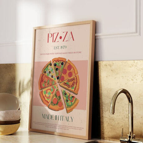 Наслаждайтесь кусочком Италии с принтом «Пицца» Назмы Хохара, праздником кулинарного мастерства и итальянских традиций. Являясь культурной эмблемой итальянского наследия, он идеально подходит для придания вдохновения любой кухне или столовой.