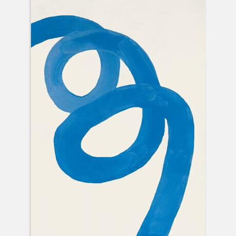 Ручная роспись абстрактного мотива толстой синей линии изогнутой формы. Этот мотив является частью коллекции Summer Bliss, созданной нашими дизайнерами для Postery Atelier.