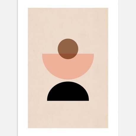 Графический постер с множеством геометрических фигур в естественной цветовой палитре. Встроенный белый коврик элегантно обрамляет принт и выделяет его.