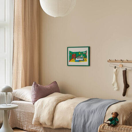 Пеппи Длинныйчулок — вечный персонаж, созданный шведской писательницей Астрид Линдгрен. Обладая добротой, оранжевыми косами, веснушчатым лицом и недюжинной силой, Пеппи ведет полную приключений жизнь на вилле Кунтербунт в сопровождении своего коня Маленького дяди и обезьяны мистера Нильссона. С 1945 года Пеппи покорила сердца читателей всего мира и стала любимым символом свободы и силы. Фотографии Ингрид Ванг Найман. Иллюстрация обеденной зоны Пеппи Длинныйчулок, где Пеппи, ее друзья Томми и Анника, а также их животные Маленький дядя и мистер Нильссон устраивают пир. Под картинкой на английском языке написана цитата Пеппи. Мотив расположен на бежевом фоне.