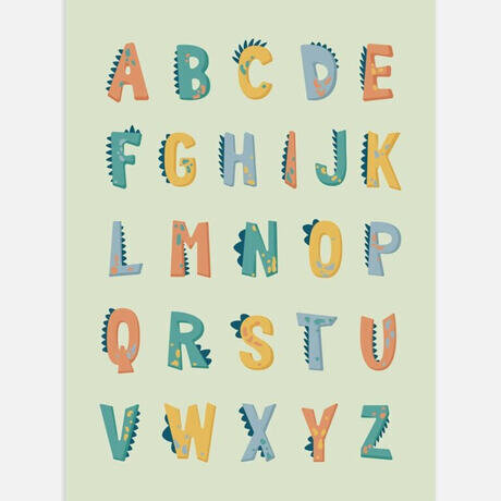Отличный образовательный детский плакат с красочным алфавитом динозавров на зеленом фоне. Идеальный мотив для всех, кто любит динозавров!