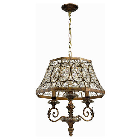 светильник потолочный в винтажном стиле. Металлический абажур покрыт декоративным покрытием, цвет «испанская бронза». Кристаллы из хрусталя кружевным рисунком покрывают всю поверхность светильника