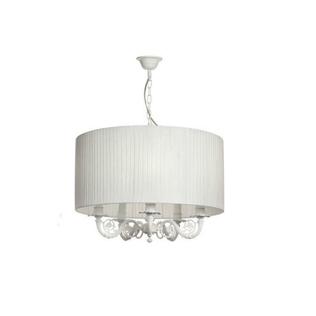светильник подвесной в стиле ар-деко. Изящное скульптурное основание выполнено из металла, который окрашен в белый цвет, абажур из плиссированной ткани также белого цвета