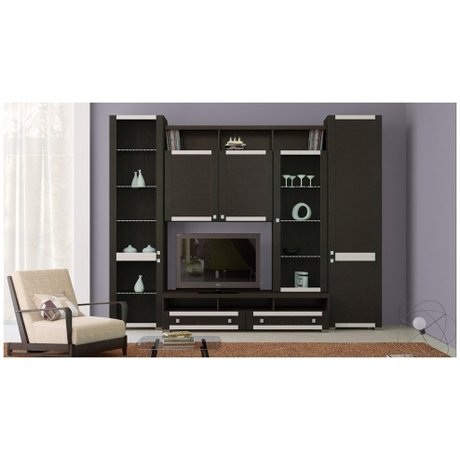Уютная гостиная с набором самой необходимой современной мебели в приятной цветовой гамме: каркас выполнен в благородном цвете венге цаво, а фасад имеет два оттенка - венге цаво и комби. В состав набора входит: шкаф высокий с глухими дверями - 1 шт., шкаф высокий со стеклянными дверями - 1 шт., шкаф навесной малый с глухими дверями - 1 шт., полка большая - 1 шт., тумба большая - 1 шт., шкаф-надстройка - 1 шт.