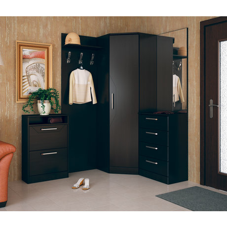 Лас-Вегас Прихожая Набор 2 состоит из вместительного углового шкафа, удобной вешалки, компактной тумбы для обуви, функционального комода.
