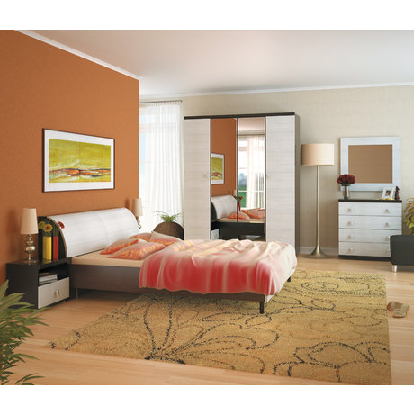 Гретта Онденс включает в себя все незаменимые атрибуты спальни: функциональный шкаф с зеркальным фасадом, удобную кровать, вместительный комод и компактную прикроватную тумбу.