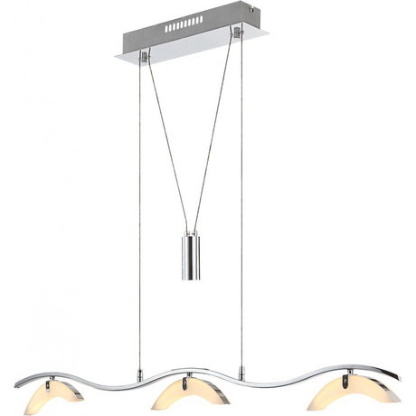 Назначение светильника: для комнаты, Стиль светильника: модерн, Тип: подвесная, Материал светильника: металл, стекло, Длина (мм): 1500, Ширина: 1000, Высота: 300, Количество ламп: 3, Тип лампы: светодиодная, Мощность: 4.8, Патрон: LED, Цвет арматуры: серебристый