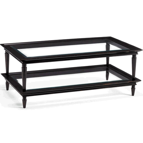 Коктейльный стол прямоугольной формы со стеклянной столешницей и стеклянной нижней полкой в отделке Black Rub.