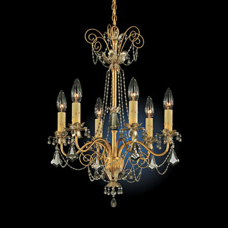 Люстра из коллекции Florentine с арматурой цвета турмалин, украшена цветными подвесками: розовыми и цвета аметист.