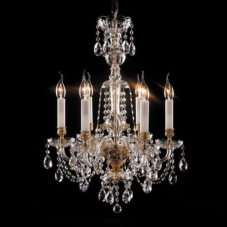 Люстра 6-ти рожковая из коллекции Moollona на металлической арматуре медного цвета в стеклянном обрамлении. Дизайн ламп выполнен в виде свечей в подсвечниках. Декор: прозрачные хрустальные чашечки и подвески с кулонами на арматуре. Высота светильника регулируется за счет звеньев цепи.