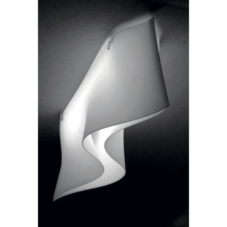 Потолочный светильник Zeffiro 140. Два световых паруса свободно развеваются в пространстве как при порыве ветра, создавая комфортный рассеянный свет. Два двойных рассеивателя из матового сатина крепятся к металлическому основанию и вращаются на 15°, что так же удобно при замене ламп. Дизайн Pio & Tito Toso.