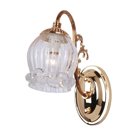 Количество ламп: 1; Мощность лампы, W: 40; Общая мощность, W: 40; Площадь освещения, м2: 2,22; Тип лампочки (основной): Накаливания; Тип цоколя: E14; Напряжение, V: 220; Степень защиты, IP: 20; Цвет арматуры: Золото; Цвет плафонов: Прозрачный