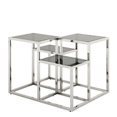 Столик Side Table Smythson на основании из нержавеющей стали. Полки выполнены из плотного стекла дымчатого цвета.